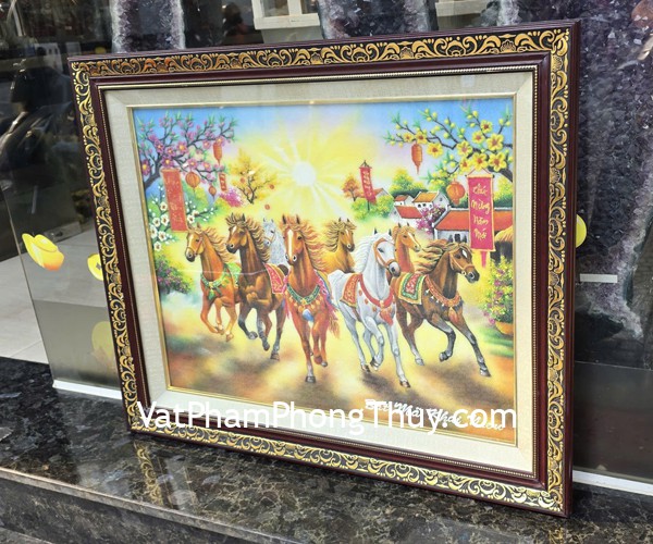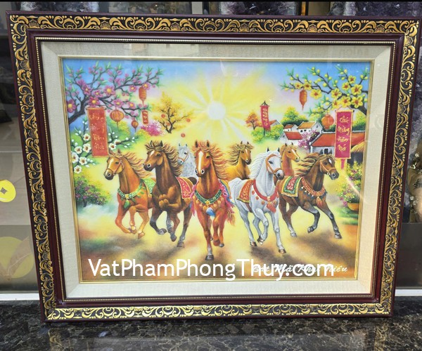 + Ý nghĩa : là hình ảnh 8 chú ngựa khỏe mạnh cùng phi nhanh về một hướng, tượng trưng cho sự đoàn kết, phát tài phát lộc (số 8 – “bát” đồng âm “phát”) và khát vọng thành công nhanh chóng. Đây là vật phẩm phong thủy cầu chúc sức khỏe, sự thăng tiến, may mắn, và vượt qua trở ngại trong năm mới.