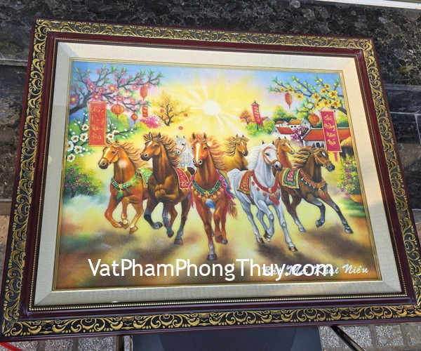 + Chất liệu và hoàn thiện : Tranh bát mã khai niên – tranh đá quý
